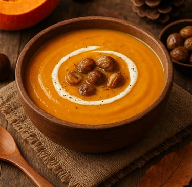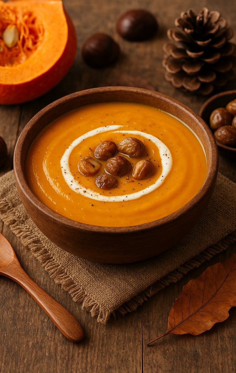 Sers chaud, décoré de quelques éclats de châtaignes rôties ou d’un filet de crème. Ce velouté est réconfortant, facile et parfait pour un dîner d’automne.